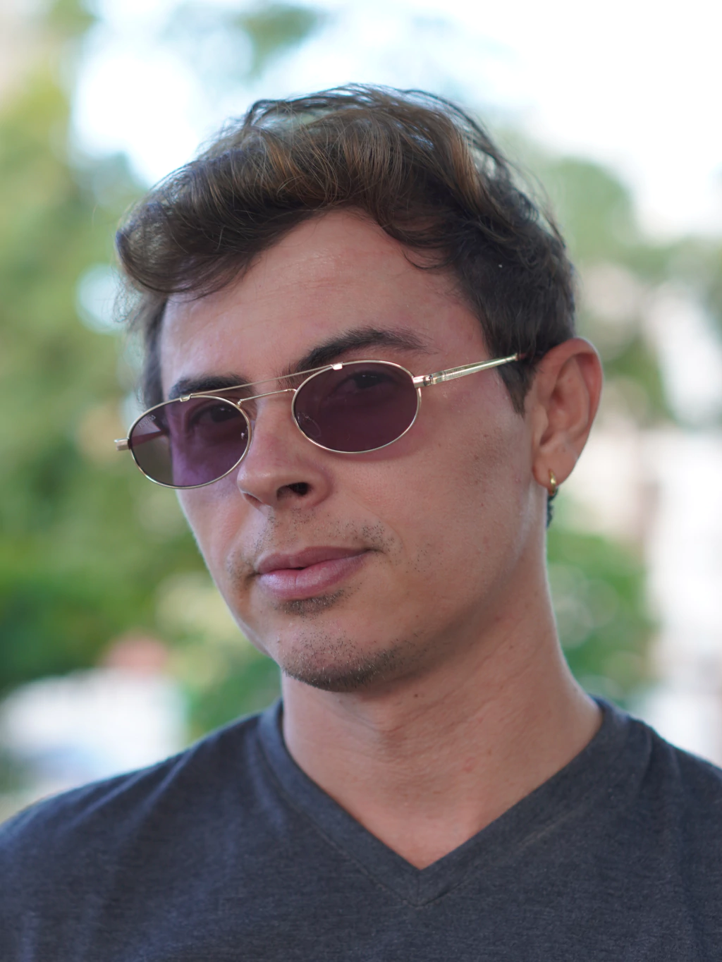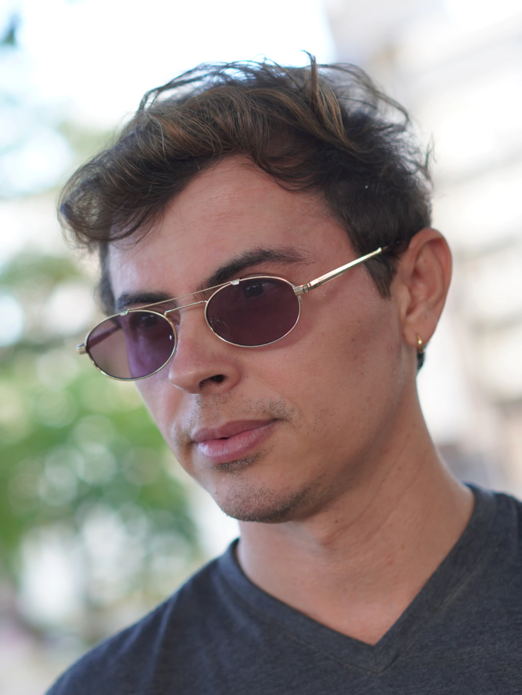 Ideal para aqueles que buscam estilo e sofisticação, estes óculos de sol apresentam um design oval que combina perfeitamente com qualquer ocasião. O modelo roxo em metal dourado traz um toque de elegância e modernidade, ideal para compor looks deslumbrantes.