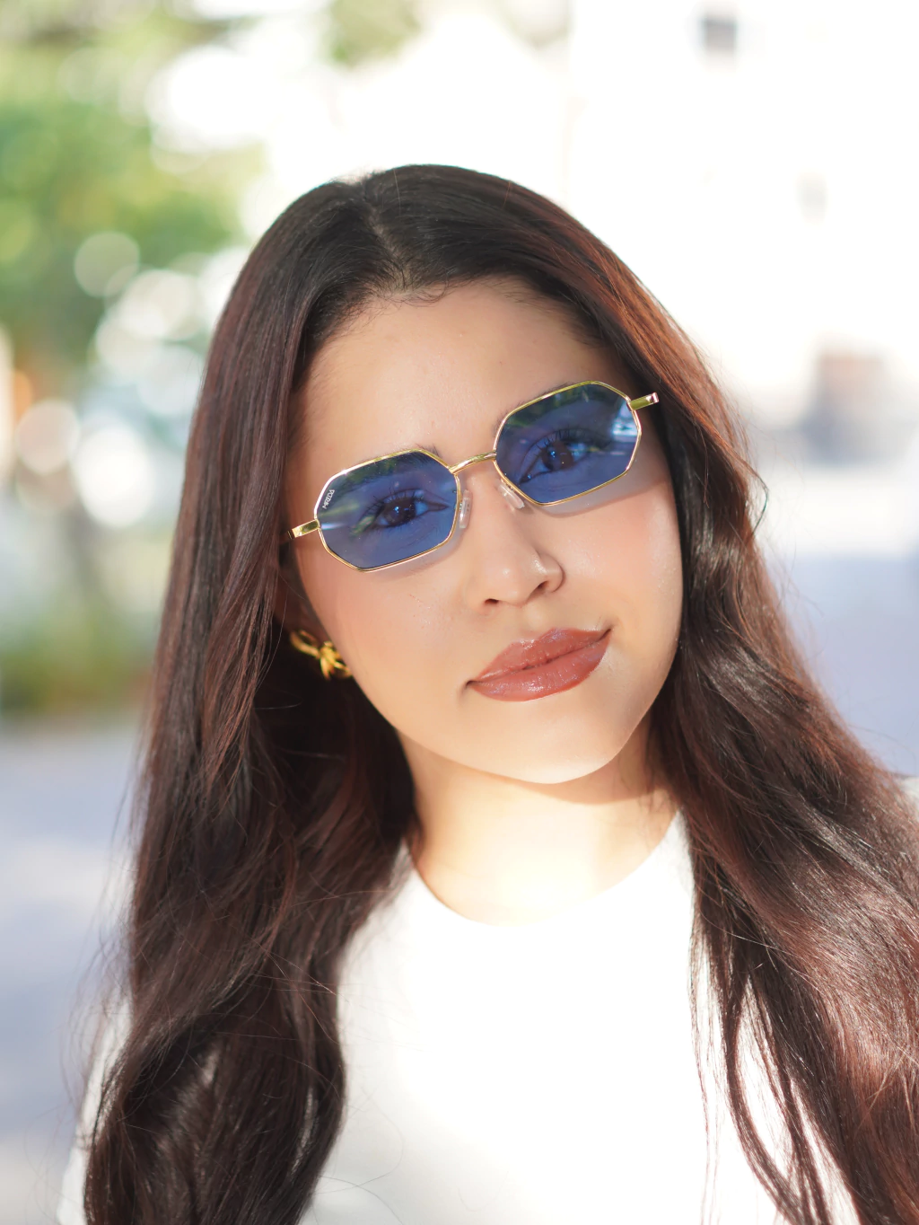 Ideal para aqueles que buscam estilo e sofisticação, estes óculos de sol apresentam um design que combina perfeitamente com qualquer ocasião. O modelo azul em metal dourado traz um toque de elegância e modernidade, ideal para compor looks deslumbrantes.