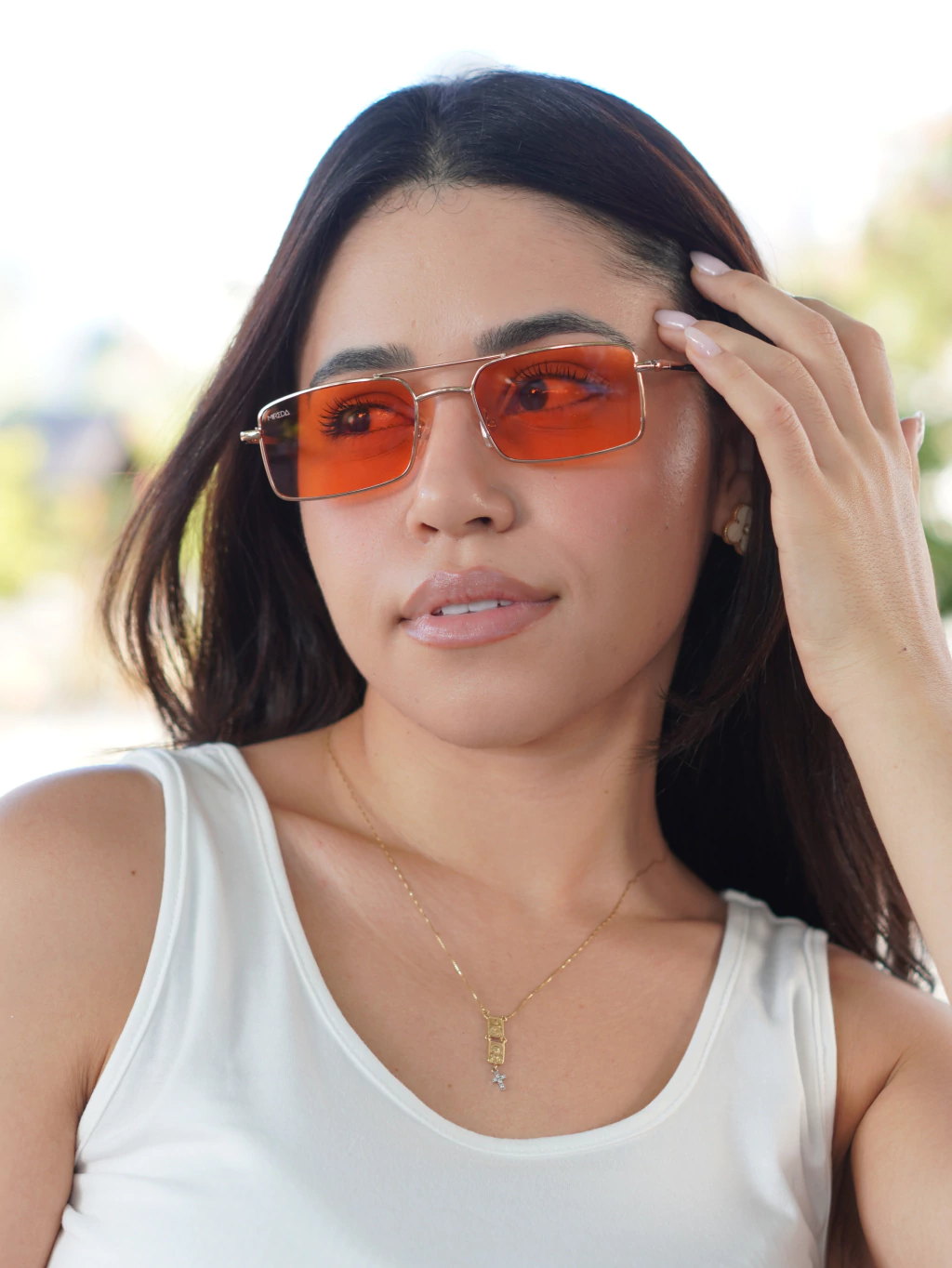 Óculos de Sol Retangular Ellis | LIMA - Dourado/Laranja- Metal